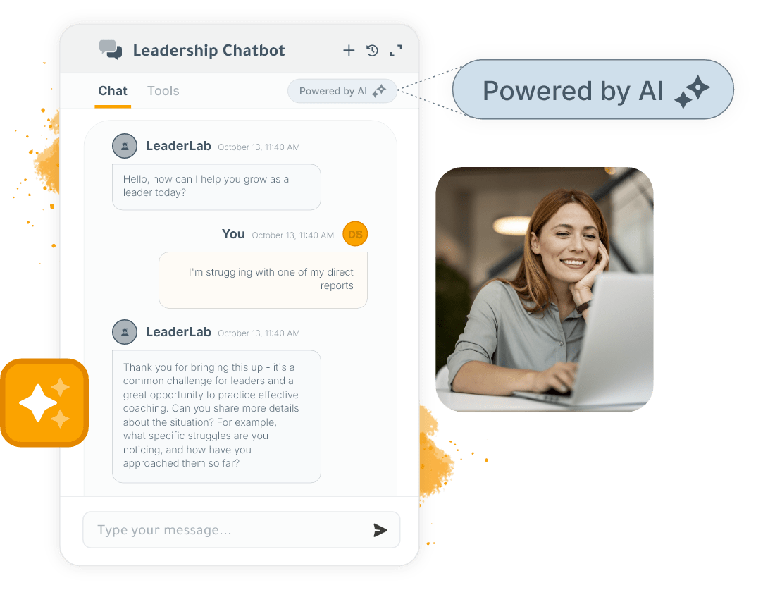 - Practice tools to reinforce learning—including simulations and an AI leadership chatbot